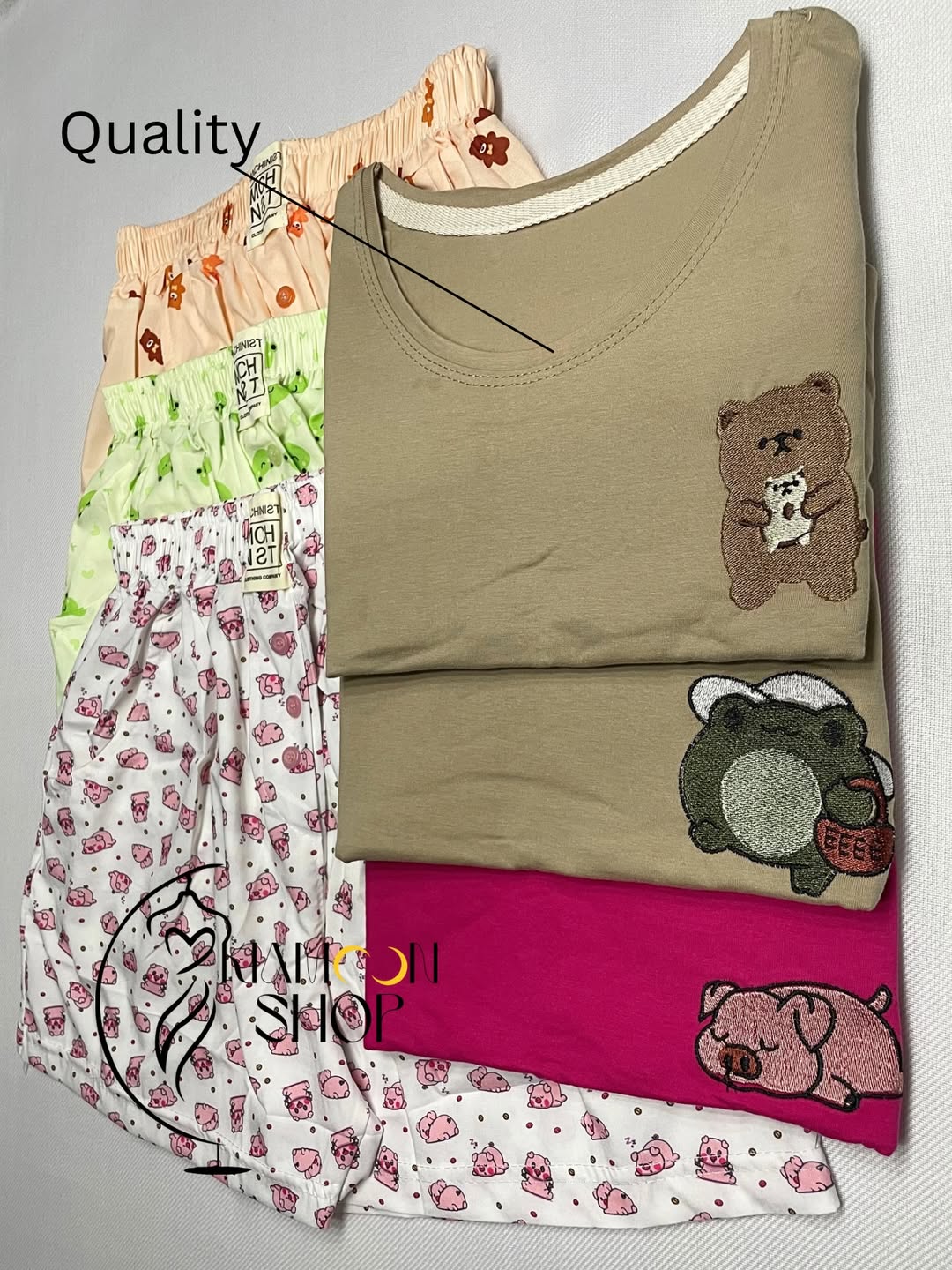 لباس راحتی و تو خونه با پارچه تیشرت نخ پنبه و پارچه شورتک نخی درجه یک